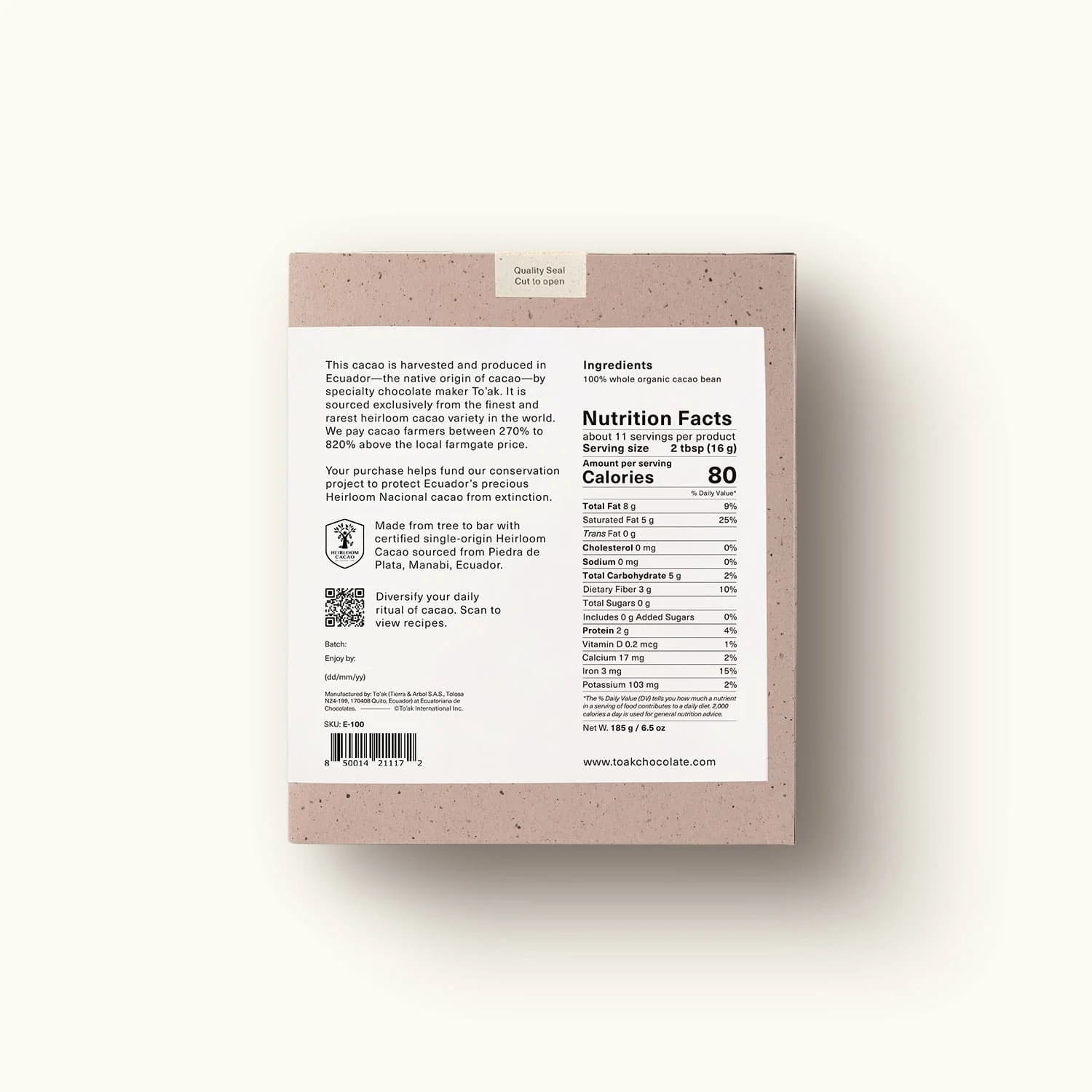 This pure, unadulterated 100% heirloom Ecuadorian cacao powder is pungently aromatic, packed with theobromine and antioxidants, and unlike any other cacao powder on the market.