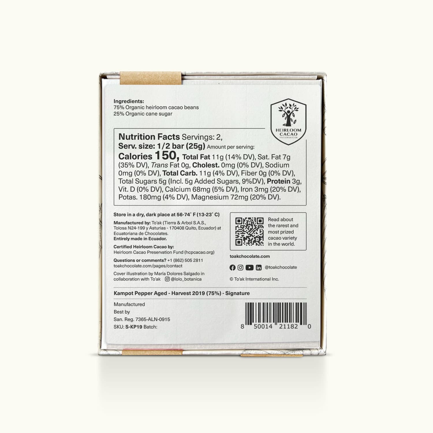 The world’s most celebrated pepper, from the Cambodian province of Kampot, meets the world’s most luxurious dark chocolate, from To’ak in Ecuador—aged for several years. A bold and floral chocolate with an artful touch of spice. Ideal for pairing with cheese, tequila, or rye whiskey.